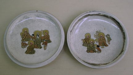 薩摩焼香合 美人、武者絵